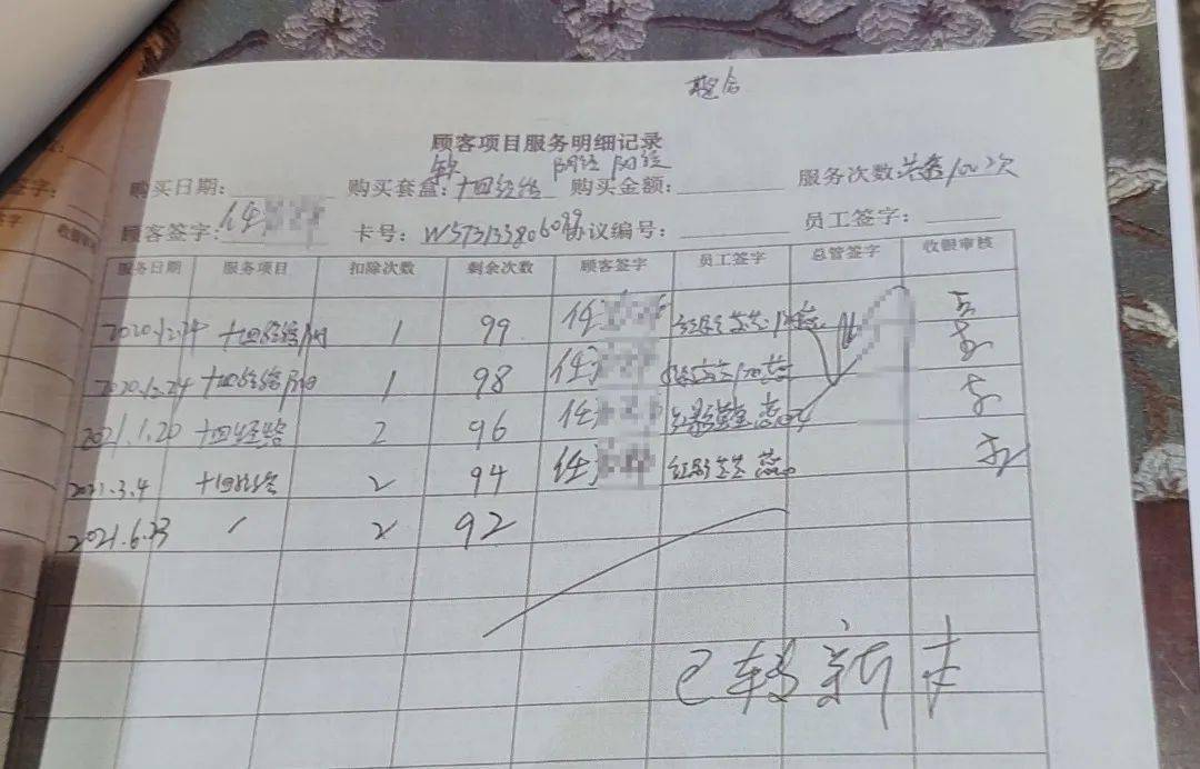 而事实上,在门店提供给任阿姨的“顾客项目服务明细”和“上海文峰全国门店美容项目服务协议书”上都写有,任先生于2020年11月18日充值了2万元“男性肾疗”服务项目,还在2021年2月7日充值了5万元“六合还阳术”。