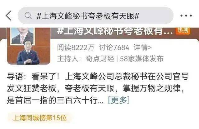 这句不是玩笑话,是文峰总裁秘书在自家公众号上对老板的日常夸赞,目前已经火出了圈,堪称职场彩虹屁天花板。