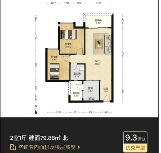 77-80㎡两房一卫户型:经典两房布局,动静分区合理,主卧朝南,采光充足。客厅宽敞明亮,阳台视野开阔,可满足刚需家庭日常居住需求,当前成交价约150万,是刚需购房的热门选择。