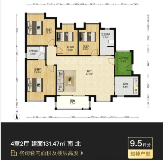 127-129㎡四房两卫户型:改善型主力户型,南北通透,四开间朝南,采光通风极佳。主卧带衣帽间和独立卫生间,空间宽敞舒适;书房、儿童房功能分区明确,满足多人口家庭居住需求,成交价310万-350万。